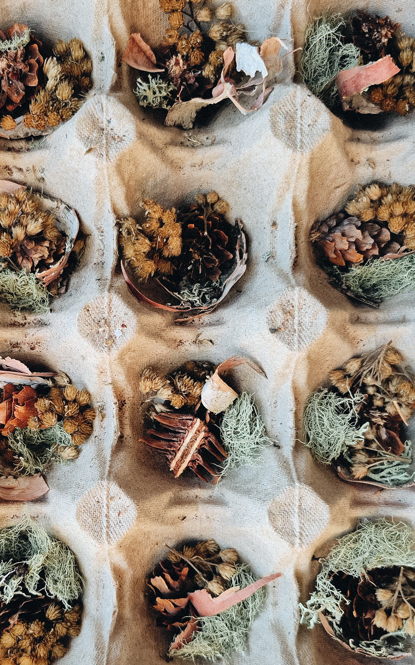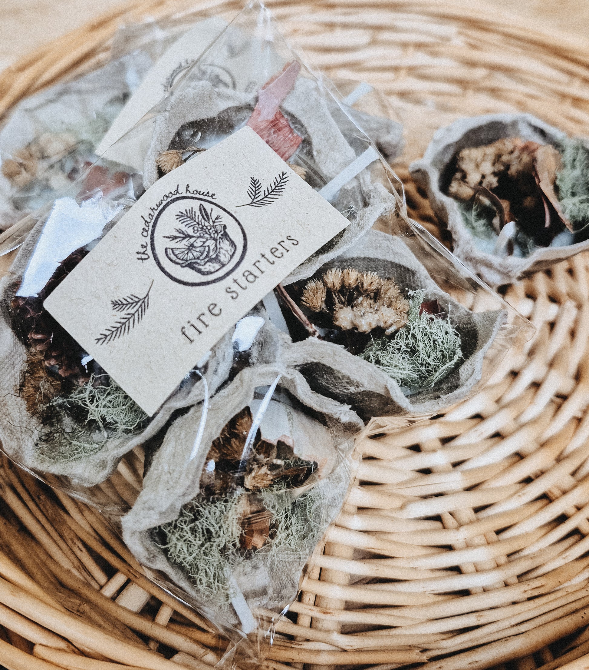 Light your cozy moments with our handmade natural fire starters. Each one is crafted in a recycled egg carton and filled with a blend of soy wax, hand foraged dried botanicals and natural fibers for an easy, reliable spark. Simply tuck one under your wood and strike a match, the slow-burning wax and rustic materials catch quickly and burn steady, making fire-building effortless.