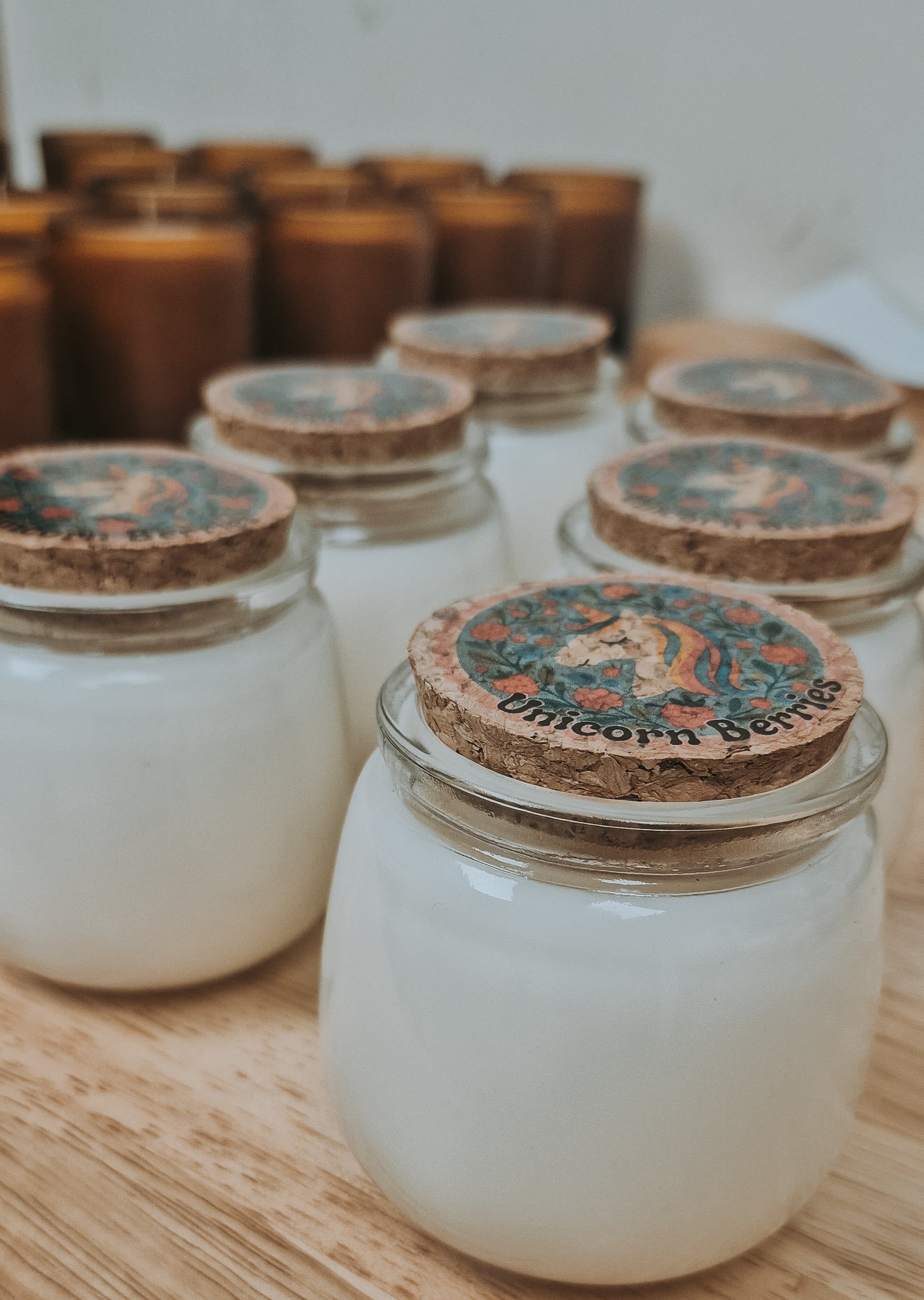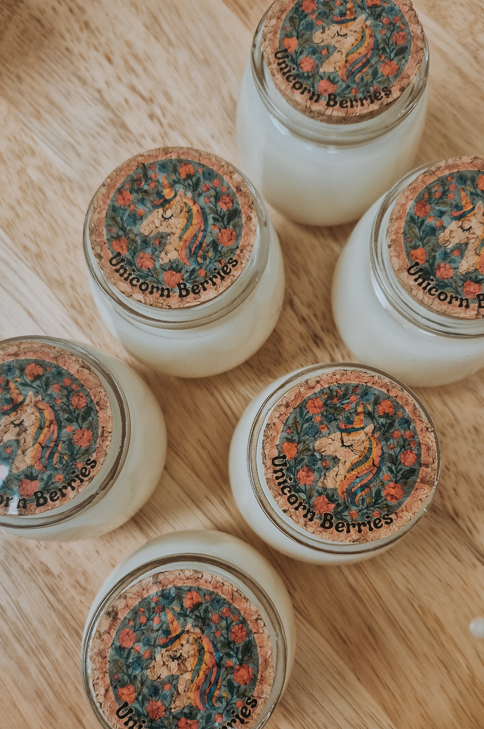 Magic in a jar. Wild strawberries dance with sun-kissed raspberries and juicy blueberries. This candle captures the spirit of a unicorn - enchanted. Light it, and let your space fill with the scent of berries, wonder and stardust whispers.